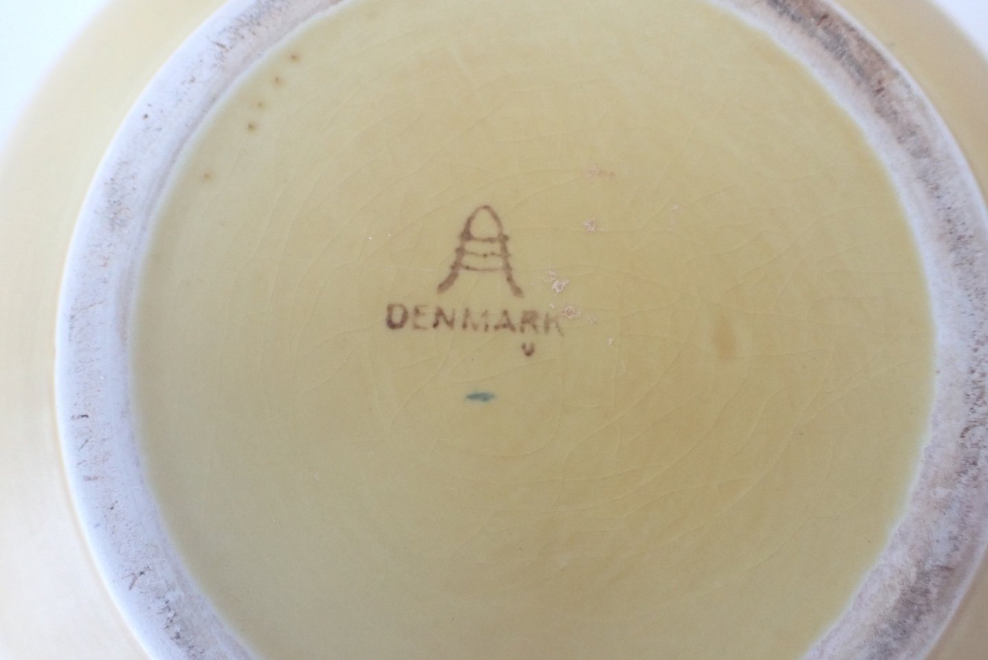 Aluminia - stor Marselis tekande med gul glasur, designet af Nils Thorsson (1940 - 1943). Mål: 15 x 24 cm. I fin nærmest ubrugt stand.