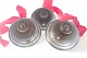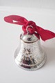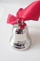 3 forsølvede juleklokker med dekorationer: Stjerne og Jul . Højde: 7 cm - diameter: 6,6 cm. Dansk fra en gang i 1950-erne. 1 lidt nyere med forsølvning i fin stand. og 2 ældre med lidt slidt forsølvning.