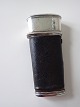 Necessairesæt til mand i læderbetrukket messingbeholder med sølvlåg og bund. Indeholder sølvske, saks i sølv og stål, barberkniv i sølv og stål, "notesblok" i ben, blyant med sølv og benpind. Formentlig engelsk 1800-tals midte. Beholderhøjde: 8,7 cm. I pæn stand i forhold til alder og brug.