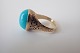 18 karat guldring med cabochonslebet turkis og blåt emaljemønster.